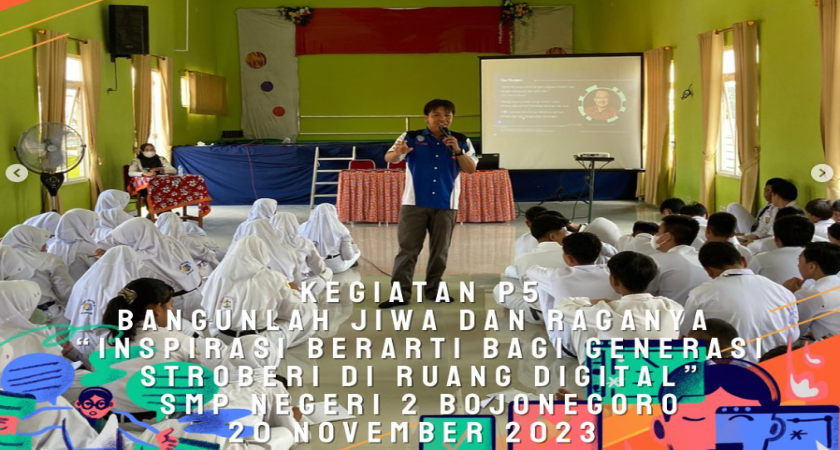Bangunlah Jiwa Dan Raganya merupakan tema pada P5 kali ini. Dimana tema khususnya adalah hal-hal yang terkait dengan Kesehatan Mental (Mental Health), Kesehatan Jasmani, dan Budaya Positif di sekolah meliputi perilaku Anti Korupsi, Anti Narkoba, dan Anti Bullying. Pada rangkaian P5 bangunlah jiwa dan raganya ini difokuskan pada “Inspirasi Berarti Bagi Generasi Stroberi Di Ruang Digital” Istilah strawberry generation pada mulanya muncul dari negara Taiwan, istilah ini ditujukan pada sebagian generasi baru yang lunak seperti buah strawberry. Pemilihan buah strawberry untuk penyebutan generasi baru ini juga karena buah strawberry itu tampak indah dan eksotis, tetapi begitu dipijak atau ditekan ia akan mudah sekali hancur.