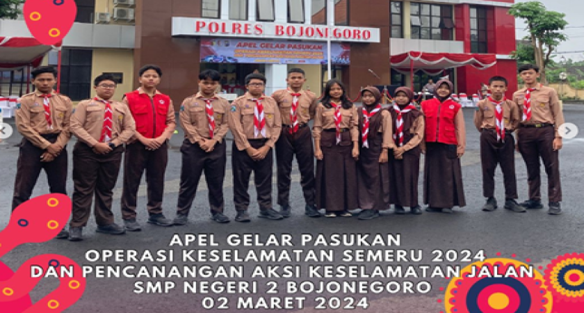 Polres Bojonegoro gelar apel pasukan keselamatan Semeru 2024 dan pencanangan aksi keselamatan jalan. Apel yang dipimpin oleh Kapolres Bojonegoro, dihadiri Forkopimda Bojonegoro, diikuti oleh peserta dari berbagai jajaran instansi terkait dan juga siswa siswi SMP Negeri 2 Bojonegoro sebanyak 10 siswa.